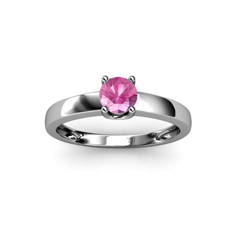 Lab Created Pink Sapphire U-Prong Womens Solitaire Engagement Ring 0.55 ct 18K White Gold More Details ...