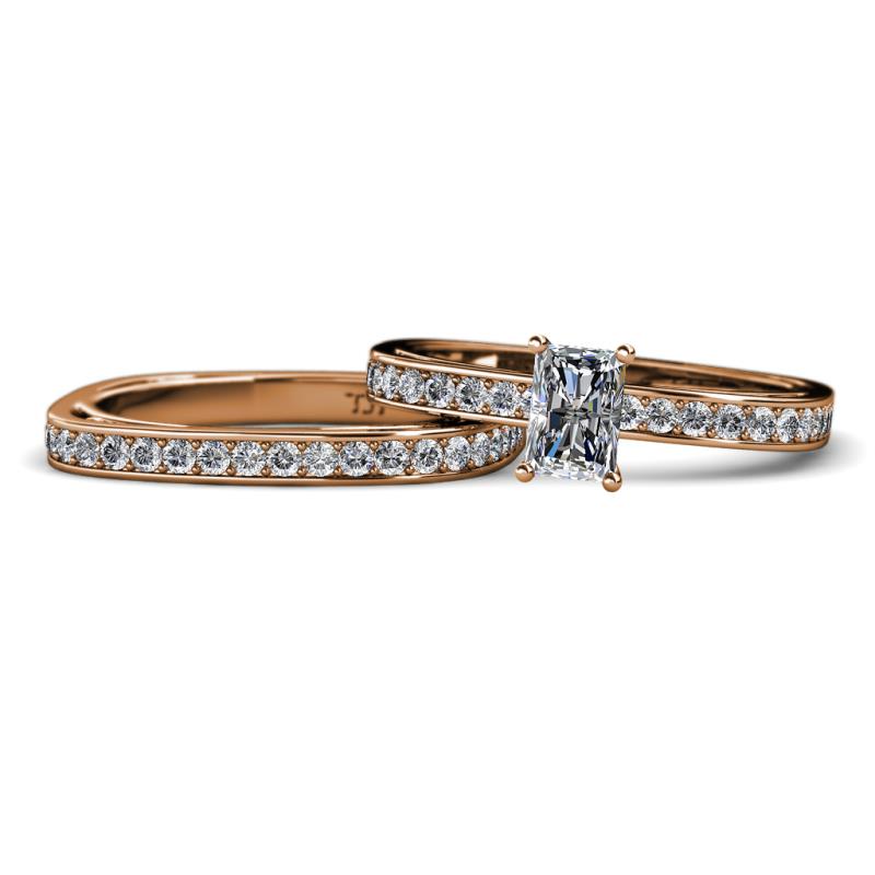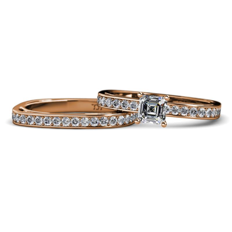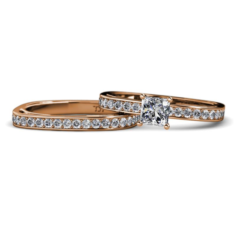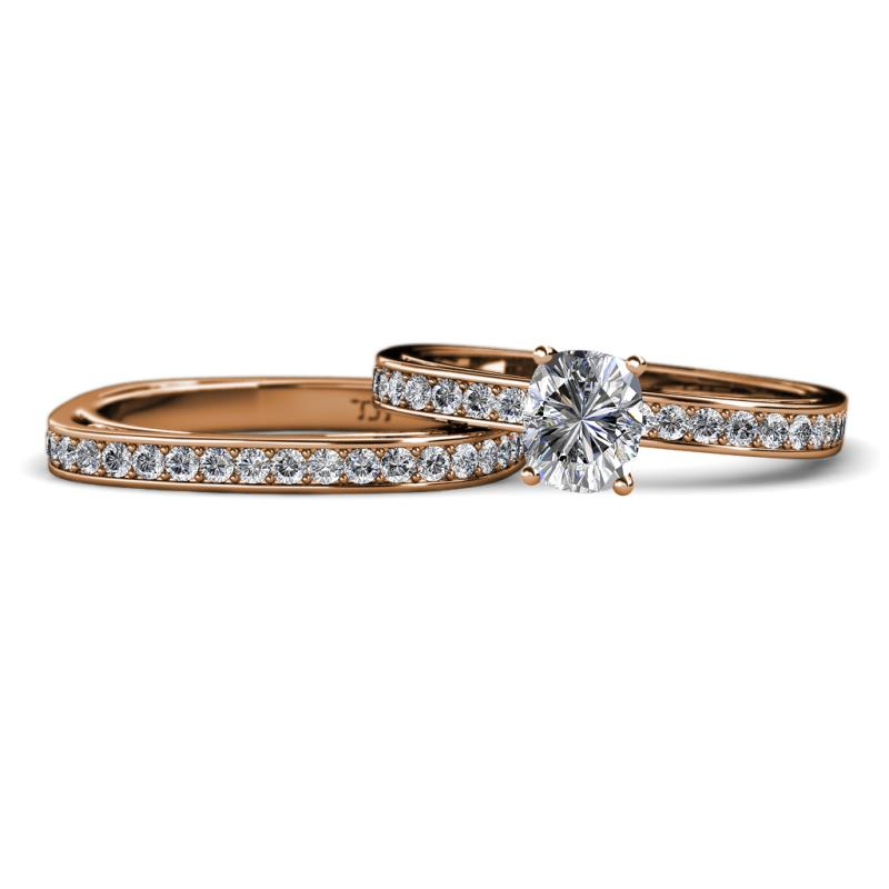 Diamond Four Prong Semi Mount Euro Shank Engagement Ring Setting & Matching Diamond Band 0.20 ctw-0.24 ctw 18K Rose Gold More Details ...