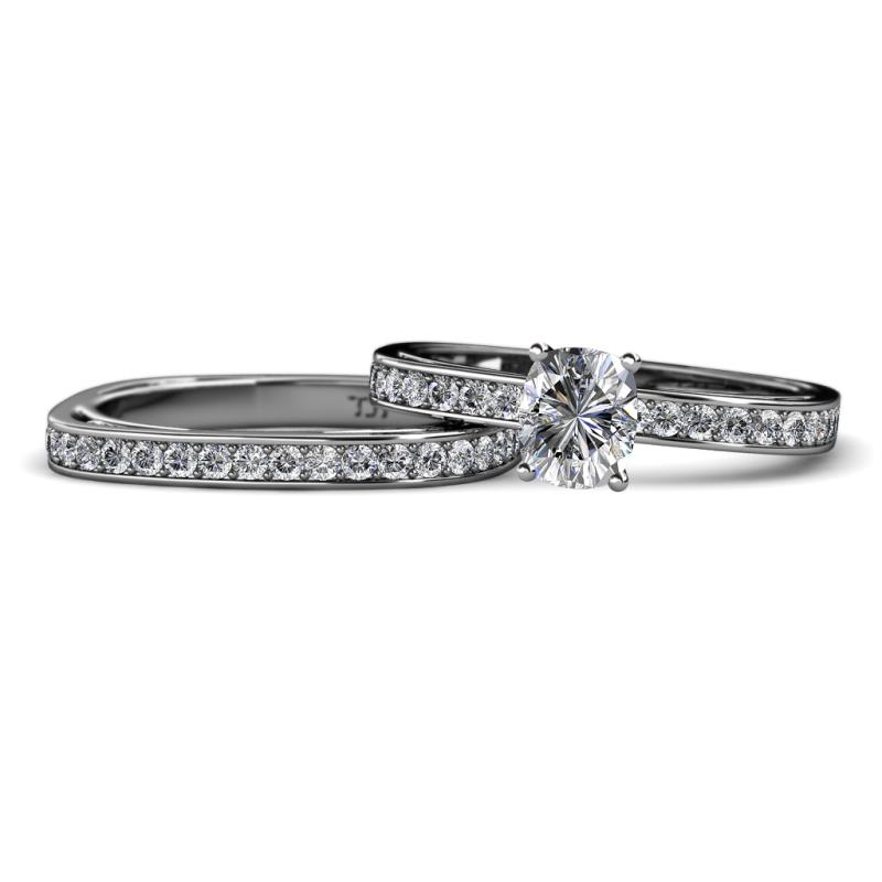 Diamond Four Prong Semi Mount Euro Shank Engagement Ring Setting & Matching Diamond Band 0.20 ctw-0.24 ctw 18K White Gold More Details ...