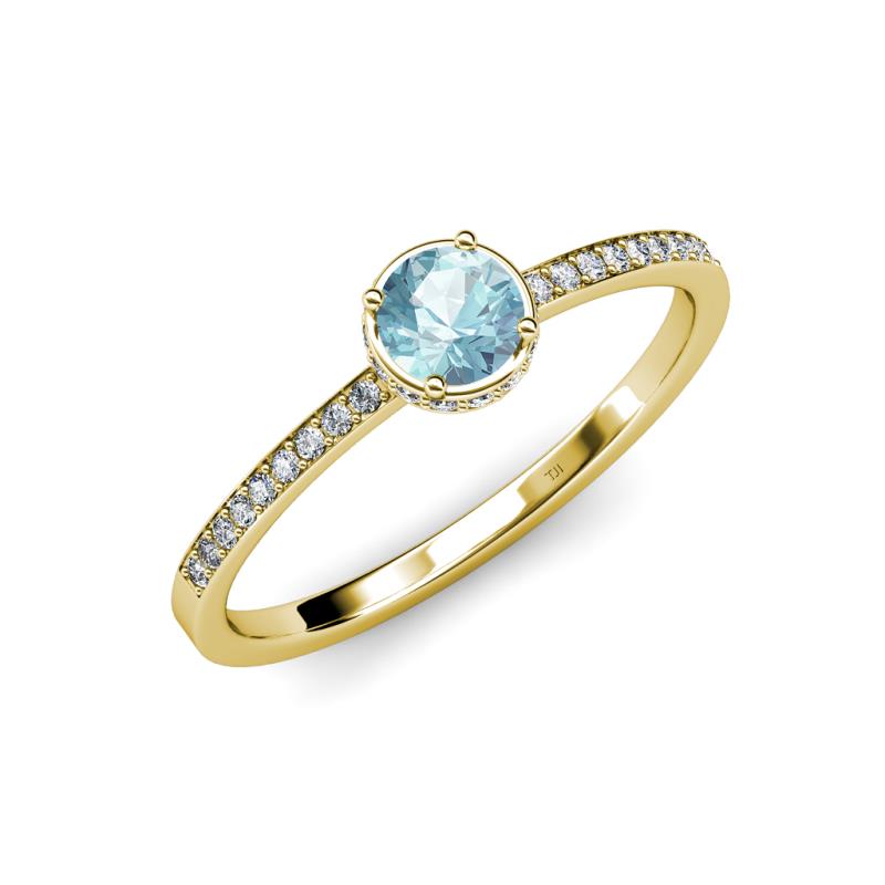 Aquamarine and Diamond Womens Halo Engagement Ring 0.88 ctw 14K Yellow Gold More Details ...
