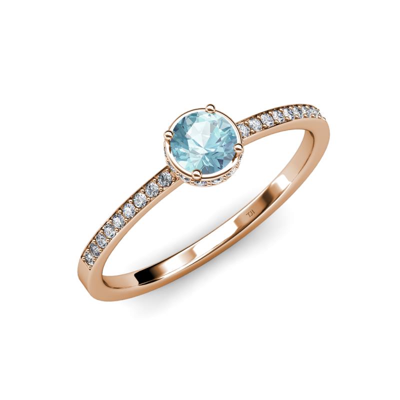Aquamarine and Diamond Womens Halo Engagement Ring 0.88 ctw 14K Rose Gold More Details ...