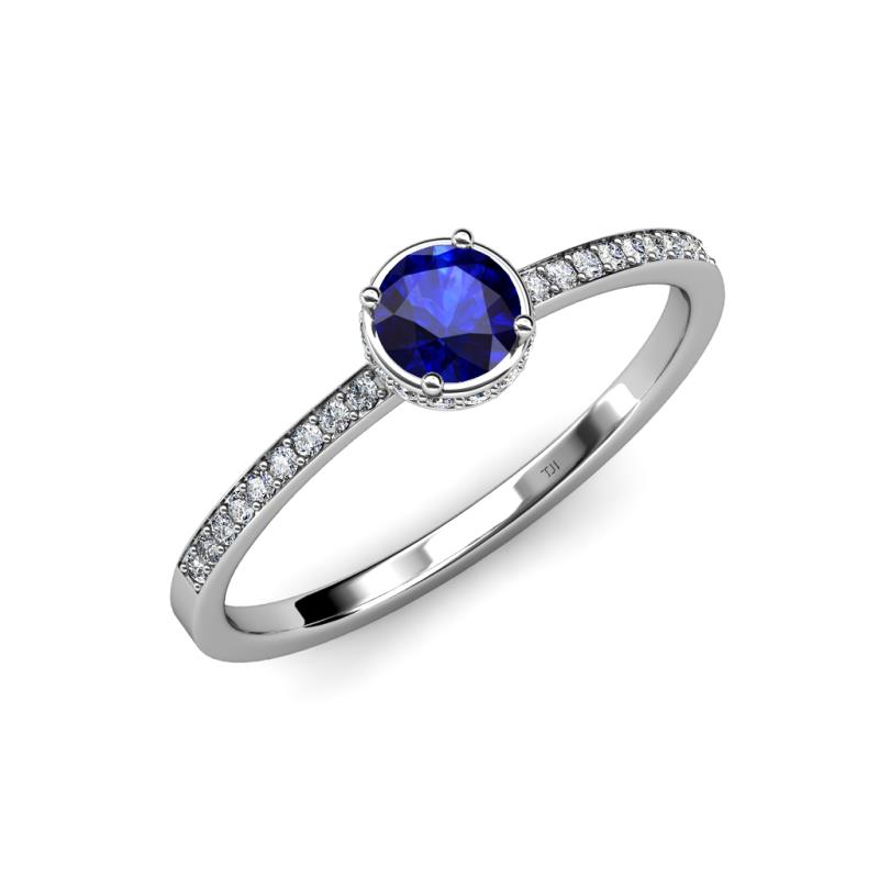 Blue Sapphire and Diamond Womens Halo Engagement Ring 0.88 ctw 18K White Gold More Details ...