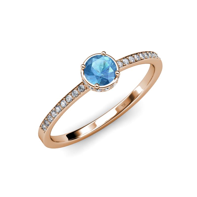 Blue Topaz and Diamond Womens Halo Engagement Ring 0.95 ctw 14K Rose Gold More Details ...