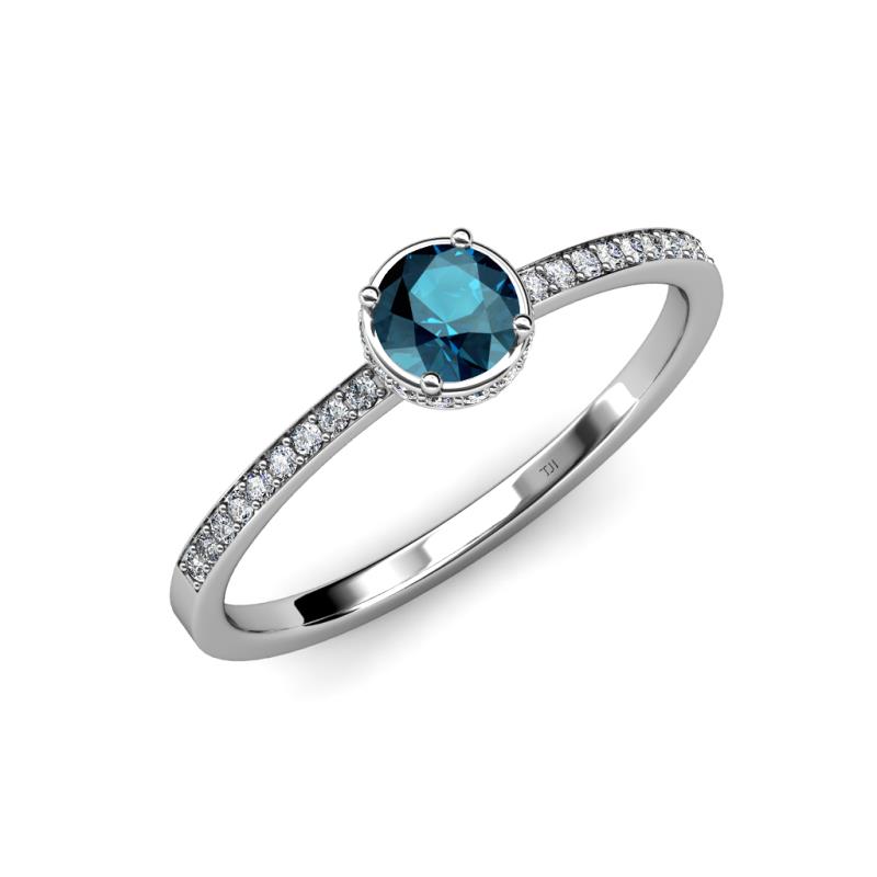 This Elegant 0.88 ct tw Halo Engagement Ring showcases a crown of Center Blue Diamond which sits pretty along the string of White Diamonds with additional White Diamonds on the shank making it a generous gift of love.