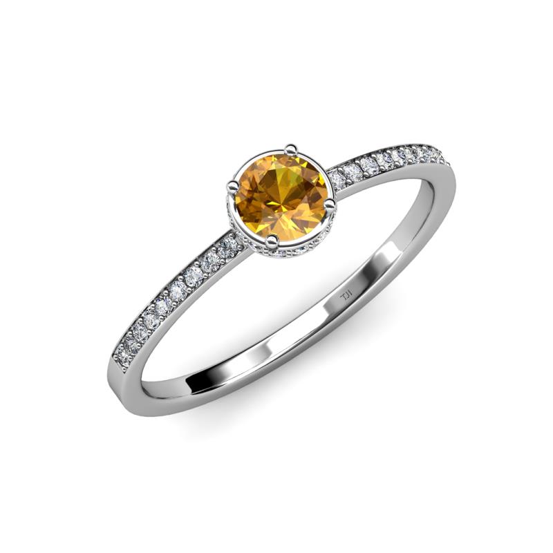 This Elegant 0.82 ct tw Halo Engagement Ring showcases a crown of Center Citrine which sits pretty along the string of Diamonds with additional Diamonds on the shank making it a generous gift of love.