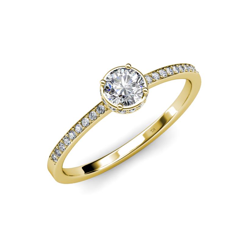 0.90 ctw IGI Certified Lab Grown Diamond Round (5.80 mm) & Natural Diamond Round (1.10 mm) Prong set Women Halo Engagemnet Ring in 14K Yellow Gold. More Details ...