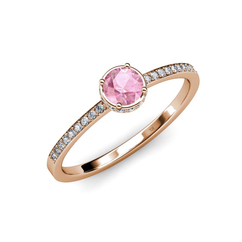 This Elegant 0.85 ct tw Halo Engagement Ring showcases a crown of Center Pink Tourmaline which sits pretty along the string of Diamonds with additional Diamonds on the shank making it a generous gift of love.