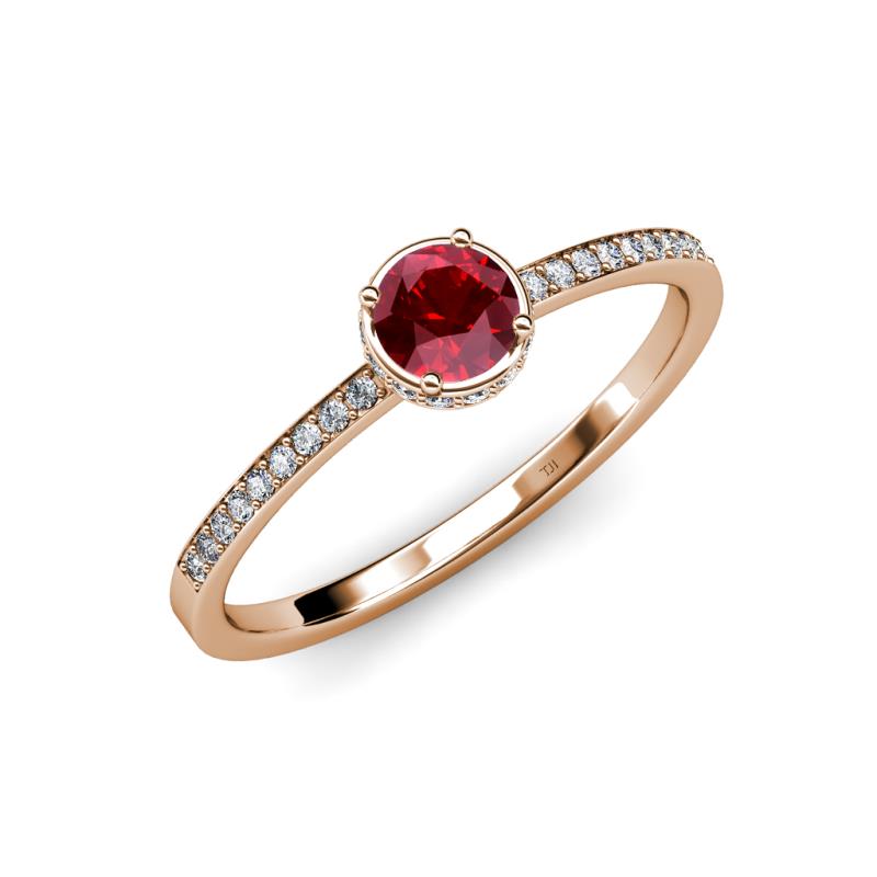 Ruby and Diamond Womens Halo Engagement Ring 0.88 ctw 18K Rose Gold More Details ...