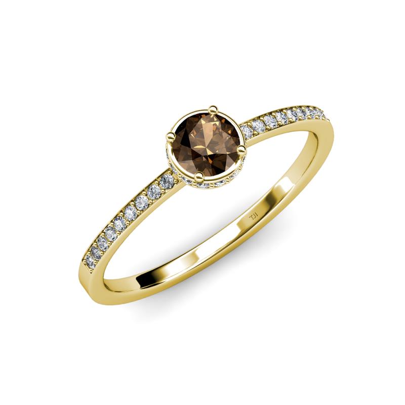 Smoky Quartz and Diamond Womens Halo Engagement Ring 0.85 ctw 18K Yellow Gold More Details ...