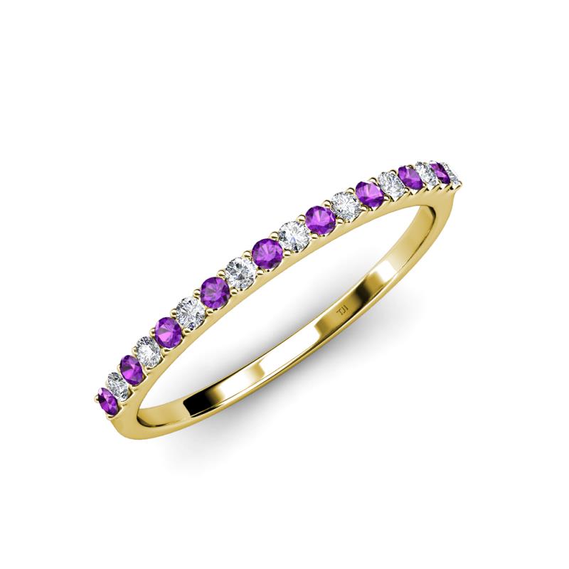 Round Amethyst and Lab Grown Diamond 0.25 ctw 18 Stone Womens Wedding Band Stackable 18K Yellow Gold More Details ...