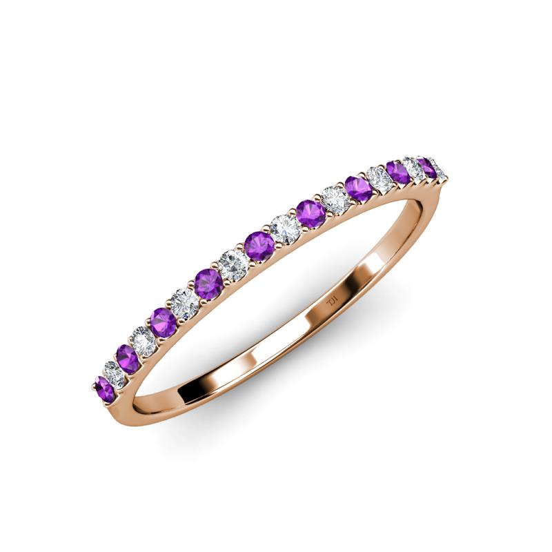 Round Amethyst and Lab Grown Diamond 0.25 ctw 18 Stone Womens Wedding Band Stackable 10K Rose Gold More Details ...