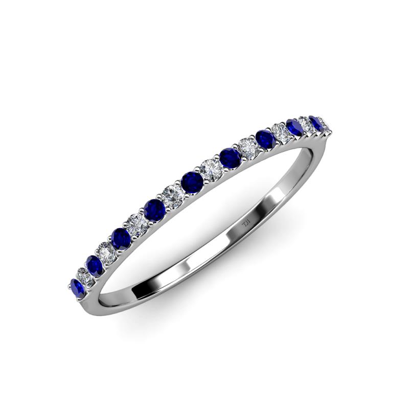 Round Blue Sapphire and Diamond 0.28 ctw 18 Stone Womens Wedding Band Stackable 18K White Gold More Details ...
