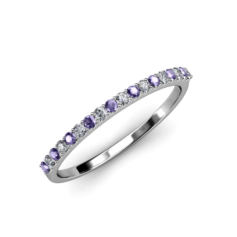 Round Iolite and Diamond 0.25 ctw 18 Stone Womens Wedding Band Stackable 10K White Gold More Details ...