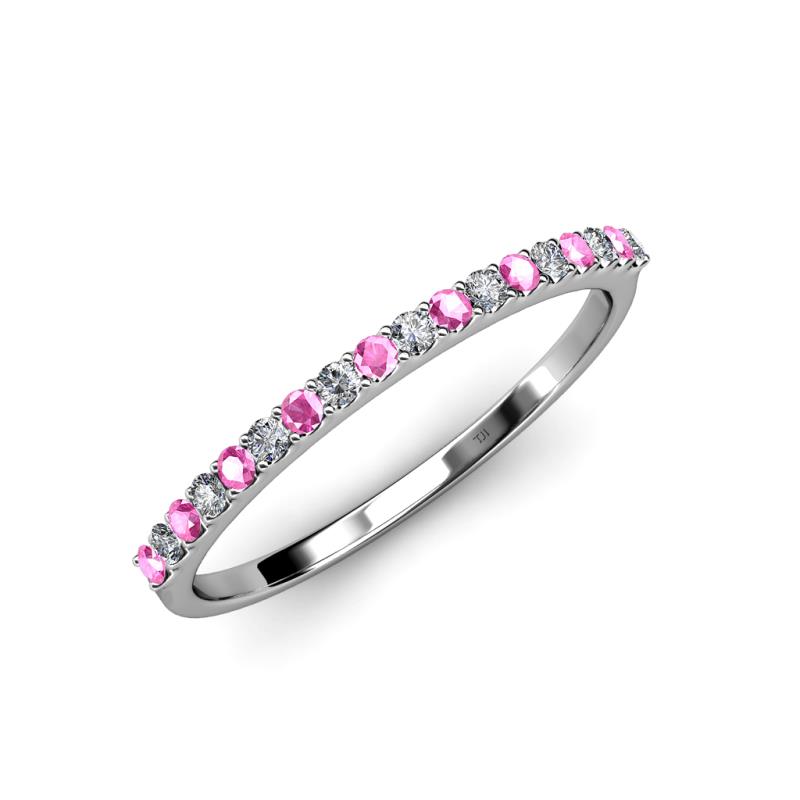 Round Pink Sapphire and Lab Grown Diamond 0.28 ctw 18 Stone Womens Wedding Band Stackable 10K White Gold More Details ...