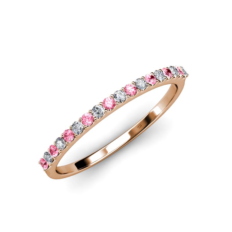 Round Pink Tourmaline and Diamond 0.25 ctw 18 Stone Womens Wedding Band Stackable 18K Rose Gold More Details ...