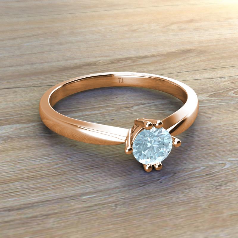 Round Aquamarine Six Prong Solitaire Women Ring 0.40 in 14K Rose Gold. More Details ...
