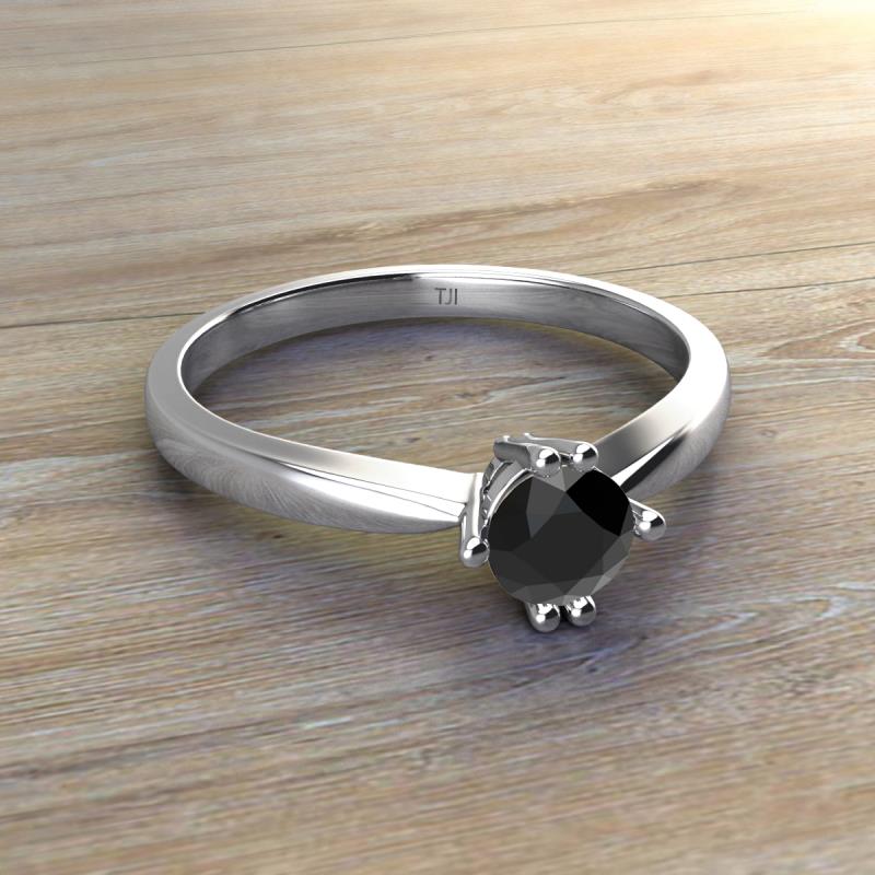 Round Black Diamond Six Prong Solitaire Women Ring 0.50 in 14K White Gold. More Details ...