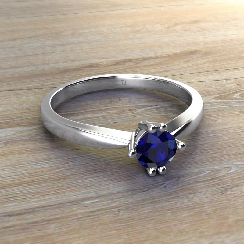 Round Blue Sapphire Six Prong Solitaire Women Ring 0.53 in 14K White Gold. More Details ...