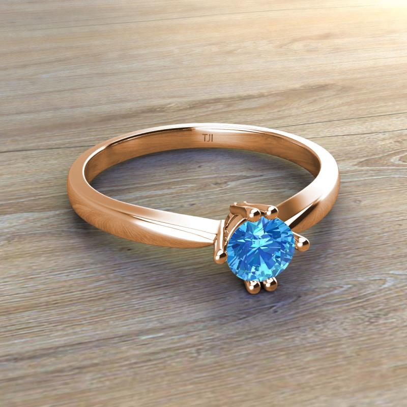 Round Blue Topaz Six Prong Solitaire Women Ring 0.50 in 14K Rose Gold. More Details ...