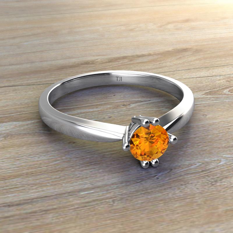 Round Citrine Six Prong Solitaire Women Ring 0.40 in 18K White Gold. More Details ...