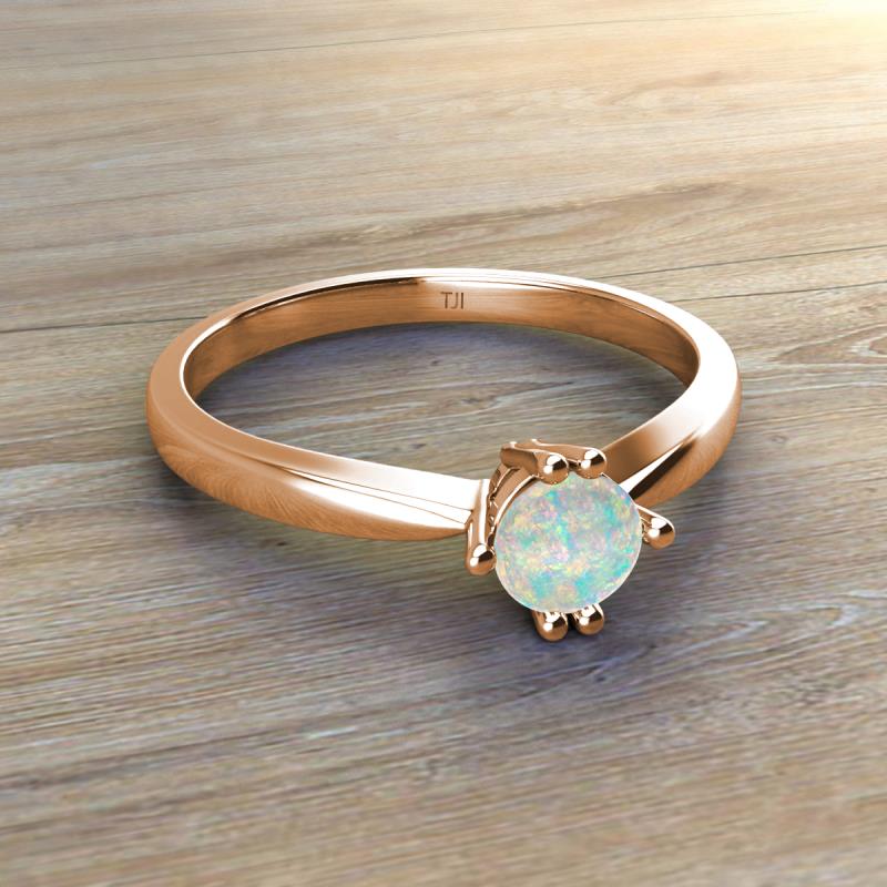 Round Opal Six Prong Solitaire Women Ring 0.35 in 18K Rose Gold. More Details ...