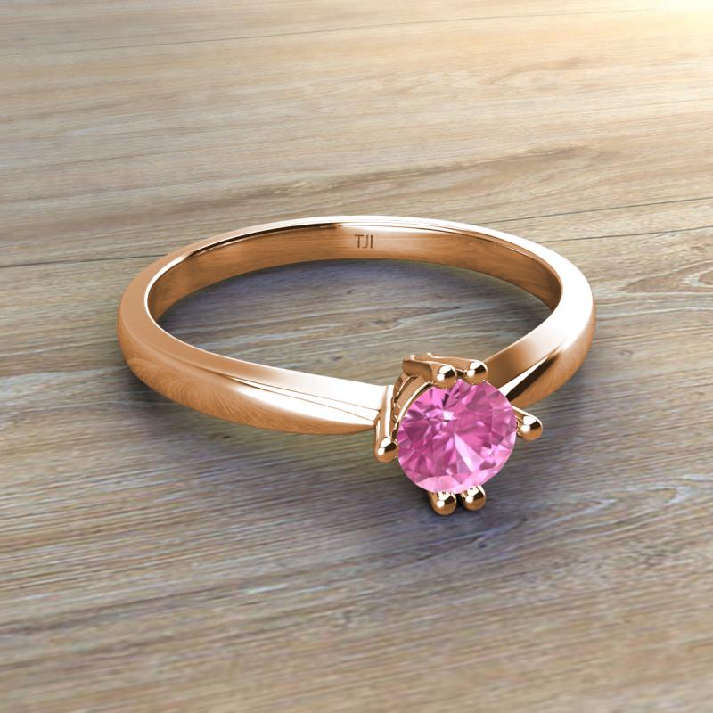 Round Pink Sapphire Six Prong Solitaire Women Ring 0.53 in 14K Rose Gold. More Details ...