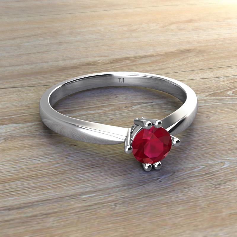 Round Ruby Six Prong Solitaire Women Ring 0.53 in 14K White Gold. More Details ...