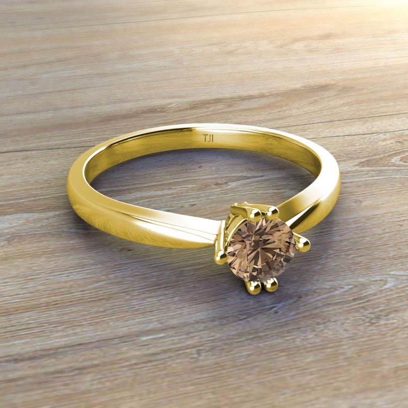 Round Smoky Quartz Six Prong Solitaire Women Ring 0.48 in 18K Yellow Gold. More Details ...