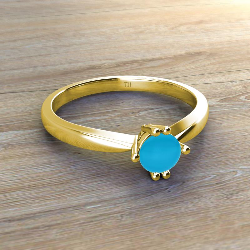 Round Turquoise Six Prong Solitaire Women Ring 0.36 in 18K Yellow Gold. More Details ...
