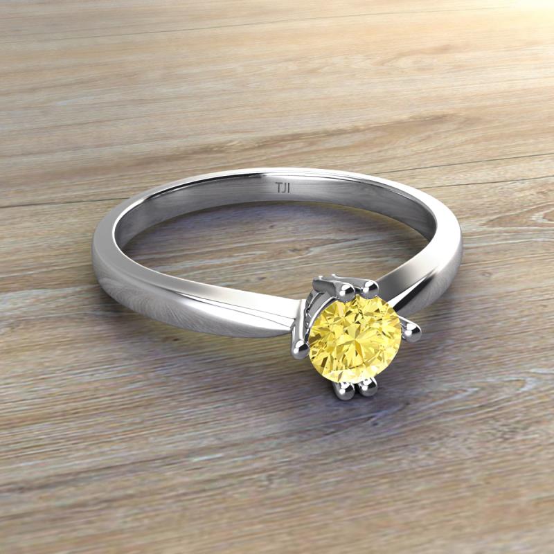 Round Yellow Sapphire Six Prong Solitaire Women Ring 0.53 in 14K White Gold. More Details ...