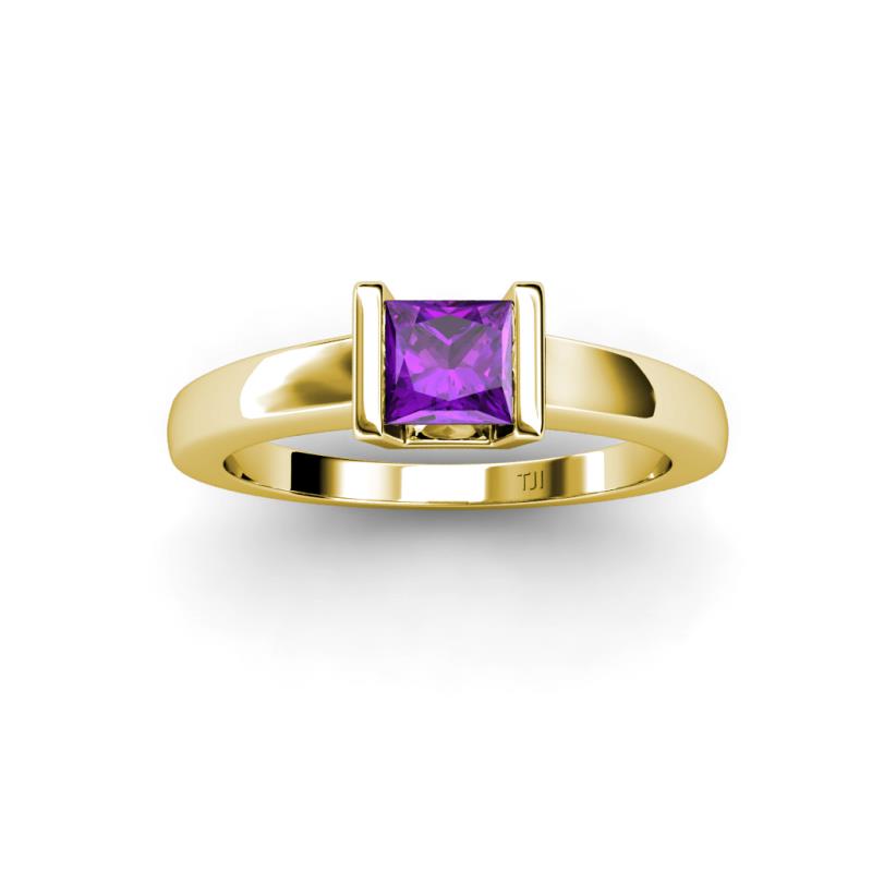Princess Cut (5.5 mm) Amethyst Womens Solitaire Engagement Ring 0.85 ct 14K Yellow Gold More Details ...