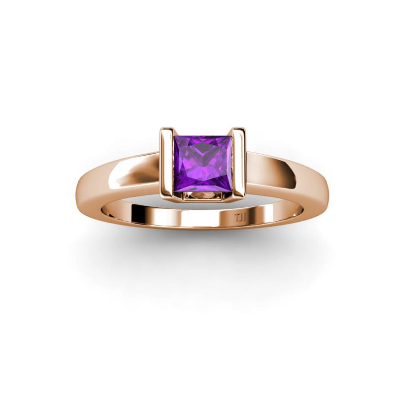 Princess Cut (5.5 mm) Amethyst Womens Solitaire Engagement Ring 0.85 ct 14K Rose Gold More Details ...