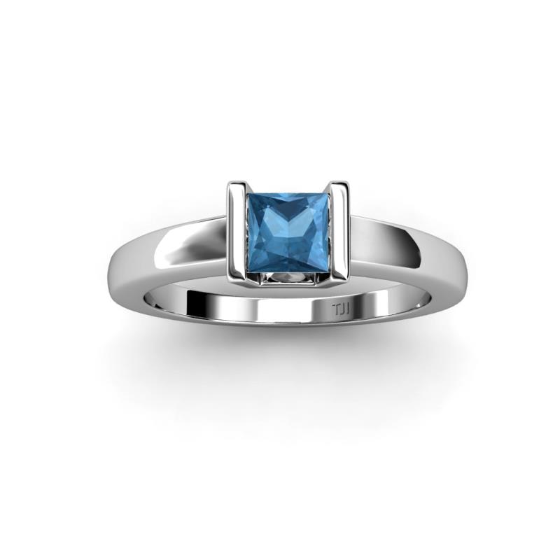 Princess Cut (5.5 mm) Blue Topaz Womens Solitaire Engagement Ring 0.90 ct 14K White Gold More Details ...