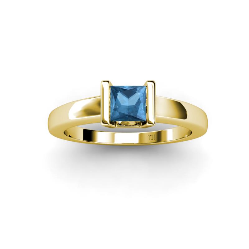 Princess Cut (5.5 mm) Blue Topaz Womens Solitaire Engagement Ring 0.90 ct 14K Yellow Gold More Details ...