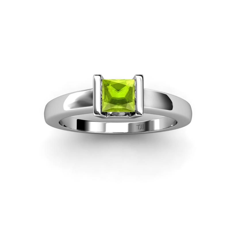 Princess Cut (5.5 mm) Peridot Womens Solitaire Engagement Ring 1.00 ct 18K White Gold More Details ...