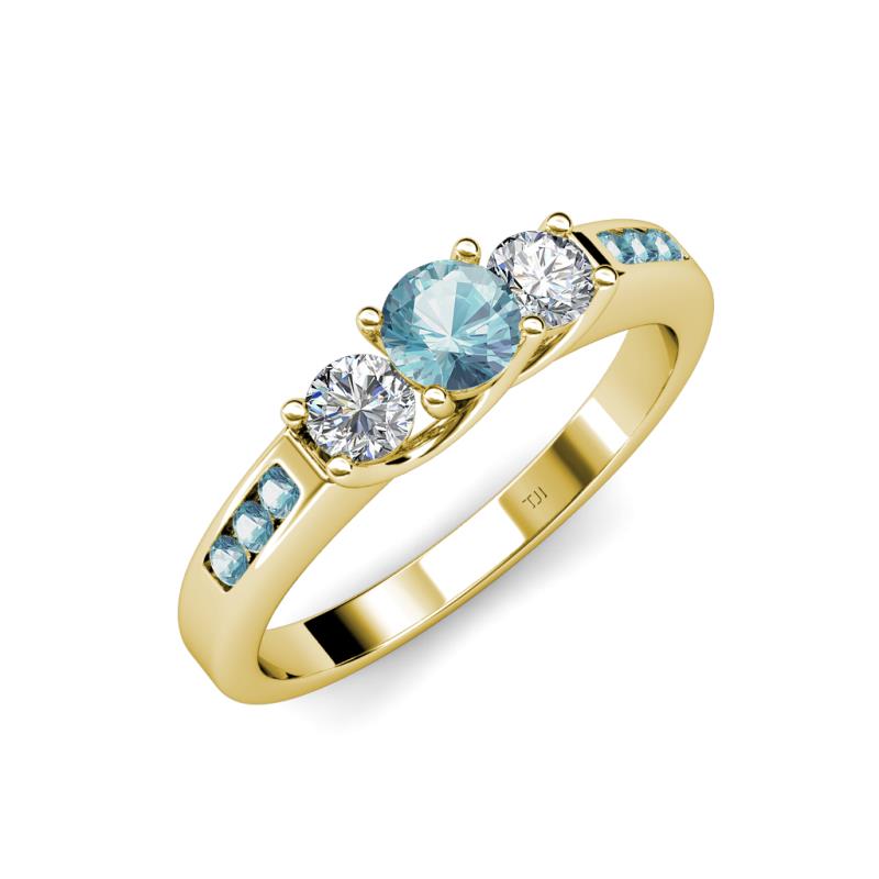 Aquamarine and Diamond Womens Three Stone Engagement Ring with Aquamarine on Side Bar 0.78 ctw 14K Yellow Gold More Details ...