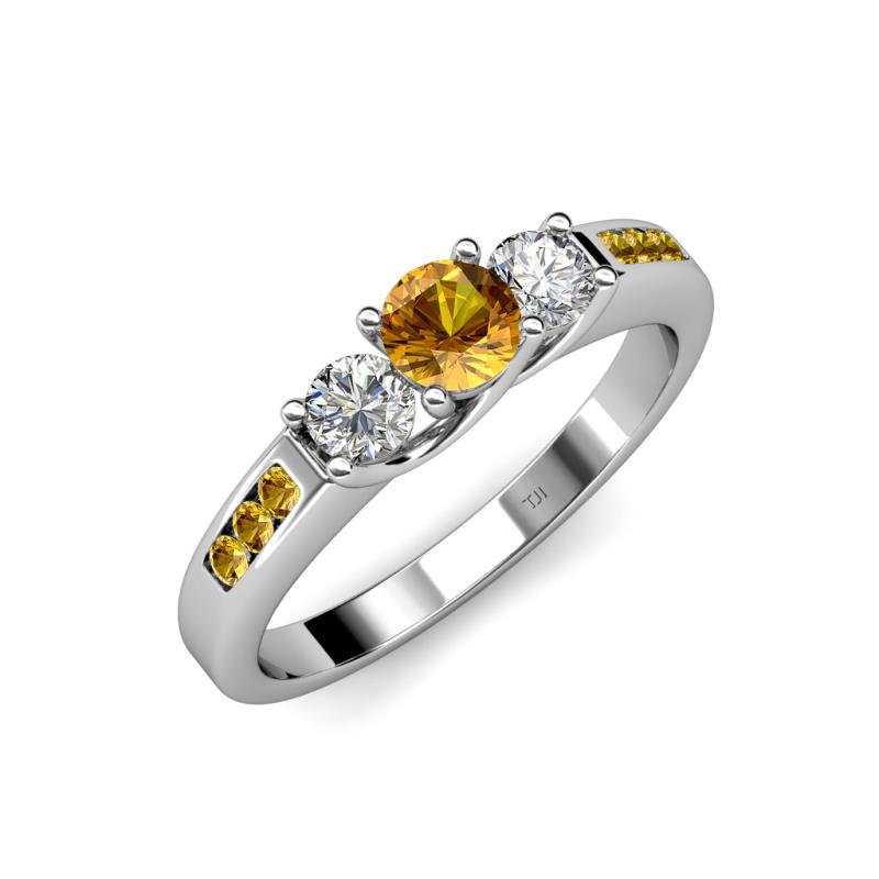 Citrine and Diamond Womens Three Stone Engagement Ring with Citrine on Side Bar 0.78 ctw 14K White Gold More Details ...