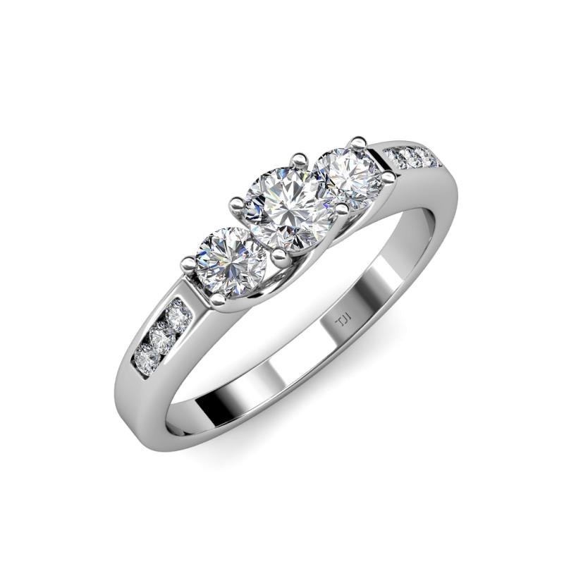 Diamond Three Stone Ring with Diamond on Side Bar 0.79 ctw 925 Sterling Silver More Details ...