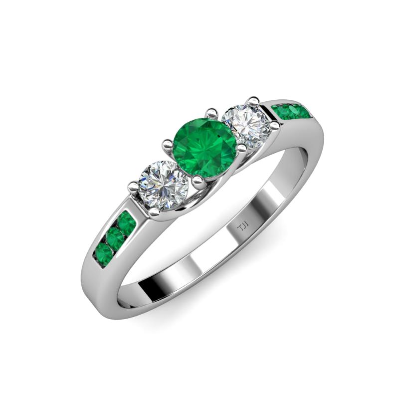 Emerald and Diamond Womens Three Stone Engagement Ring with Emerald on Side Bar 0.78 ctw 14K White Gold More Details ...
