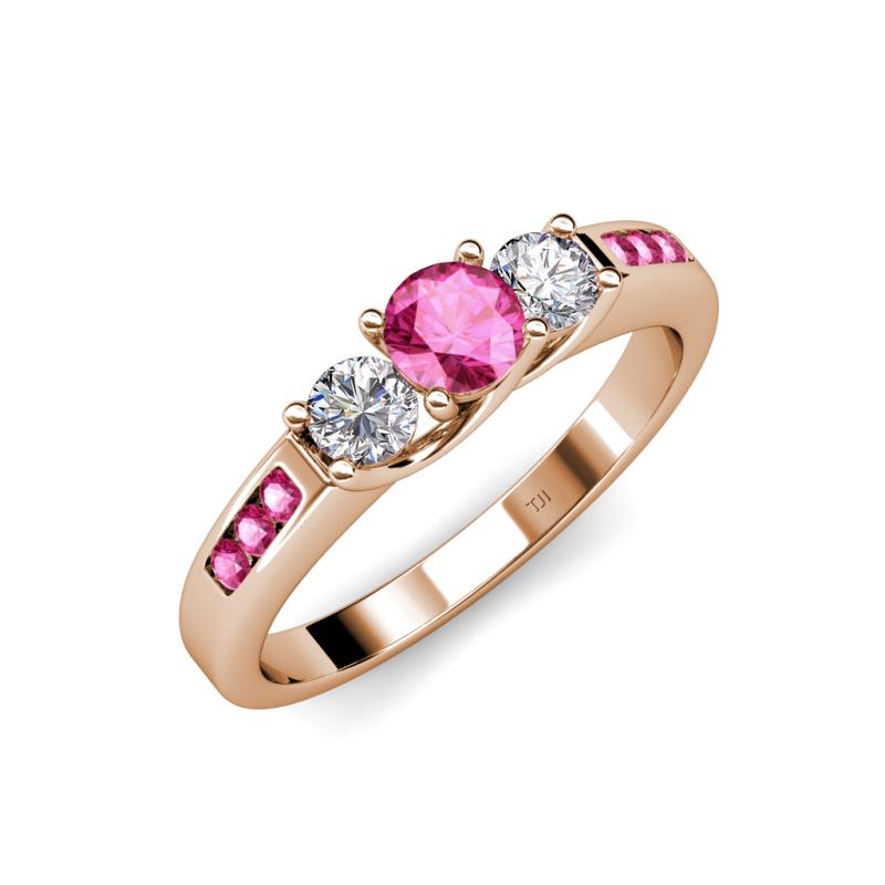 Pink Sapphire and Diamond Womens Three Stone Engagement Ring with Pink Sapphire on Side Bar 0.81 ctw 14K Rose Gold More Details ...
