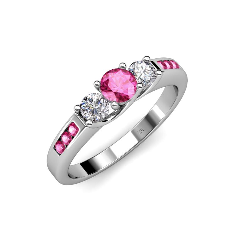 You are sure to find the right one with this 0.81 ctw Three Stone Engagement Ring which holds Side Diamond complemented with Pink Sapphire with an interwoven design to express your eternal bond.