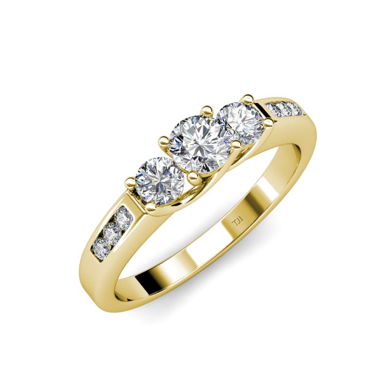 0.77 ctw Round Lab Grown Diamond (4.50 mm) & Natural Diamond (3.50 mm) with Side Lab Grown Diamond (1.70 mm) 3 Stone Engagement Ring 14K Yellow Gold More Details ...