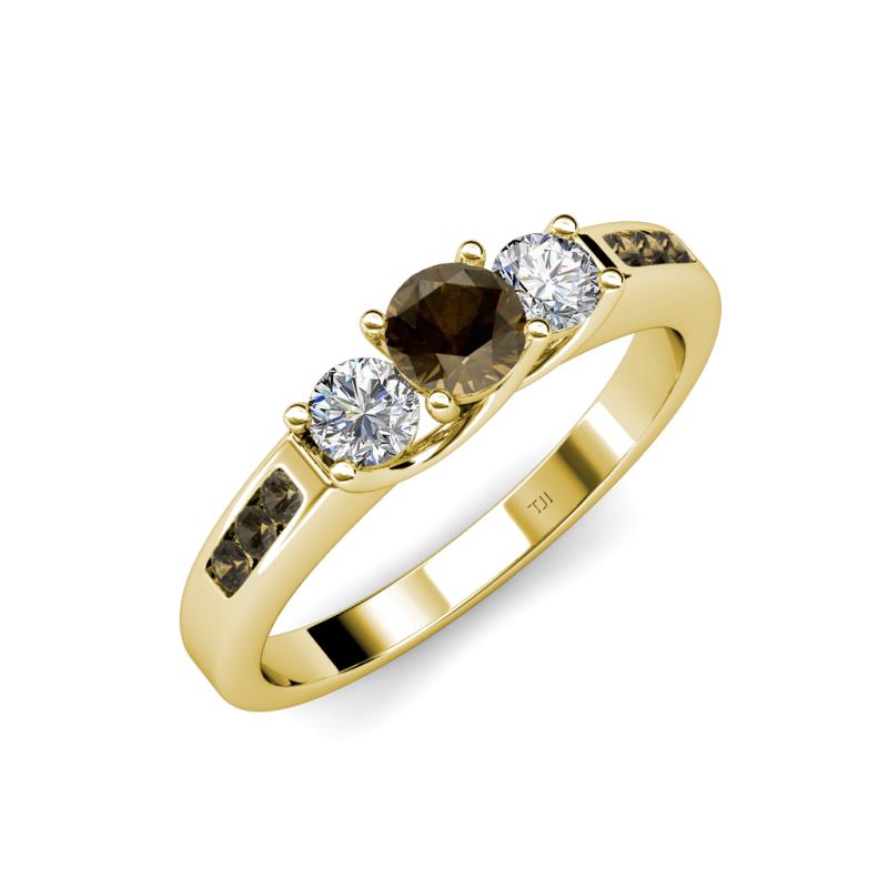 Smoky Quartz and Diamond Womens Three Stone Engagement Ring with Smoky Quartz on Side Bar 0.77 ctw 14K Yellow Gold More Details ...