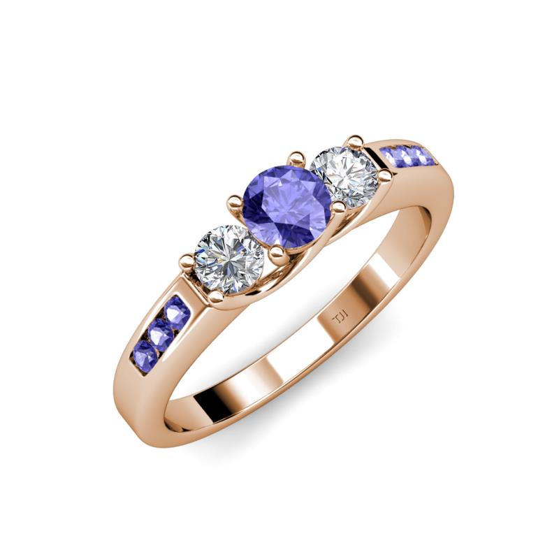 Tanzanite and Diamond Womens Three Stone Engagement Ring with Tanzanite on Side Bar 0.77 ctw 14K Rose Gold More Details ...