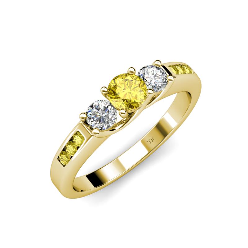 You are sure to find the right one with this 0.81 cttw Three Stone Engagement Ring which holds Side Diamond complemented with Yellow Sapphire with an interwoven design to express your eternal bond.