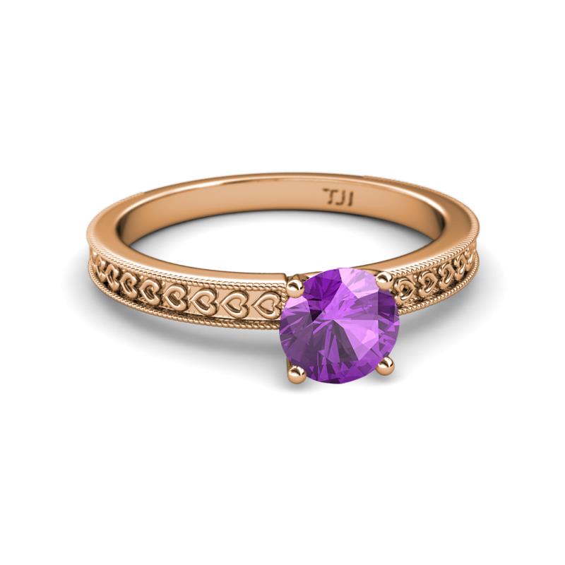 Amethyst Heart Engraved Milgrain Womens Solitaire Engagement Ring 0.87 ct 18K Rose Gold More Details ...