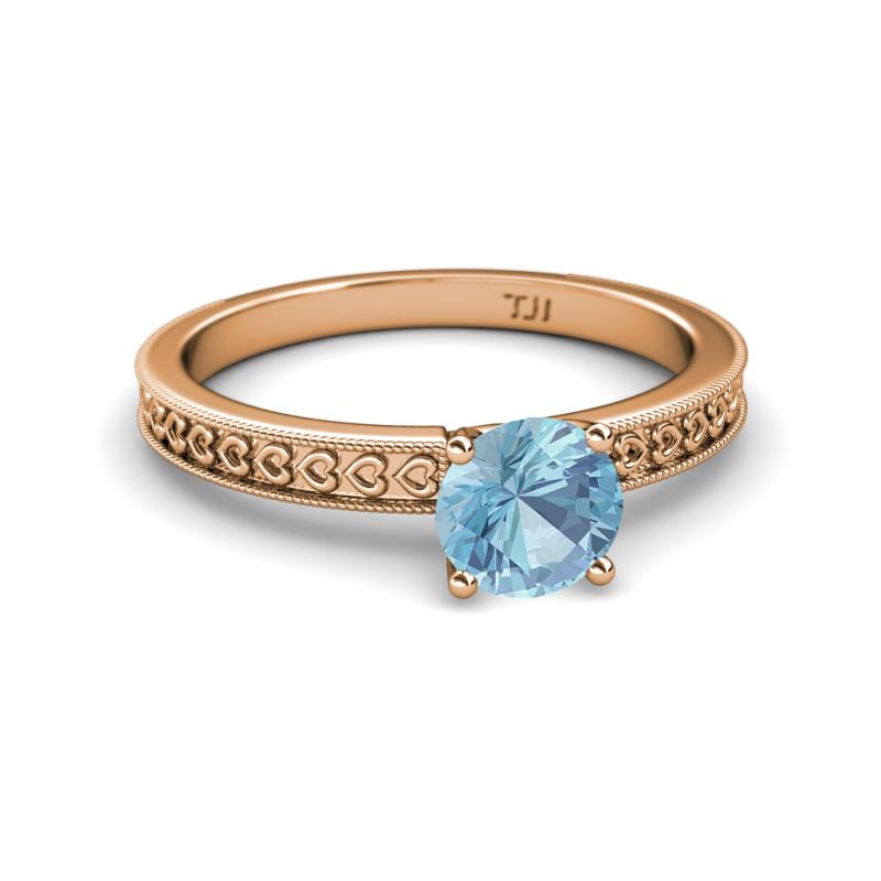 Aquamarine Heart Engraved Milgrain Womens Solitaire Engagement Ring 0.87 ct 14K Rose Gold More Details ...