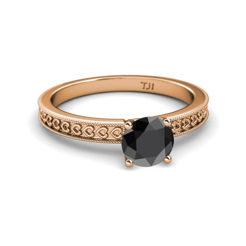 Black Diamond Heart Engraved Milgrain Womens Solitaire Engagement Ring 1.00 ct 14K Rose Gold More Details ...