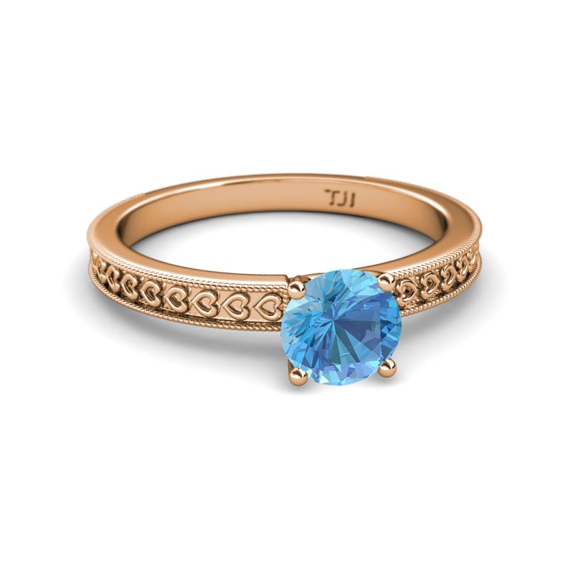 Blue Topaz Heart Engraved Milgrain Womens Solitaire Engagement Ring 1.05 ct 18K Rose Gold More Details ...