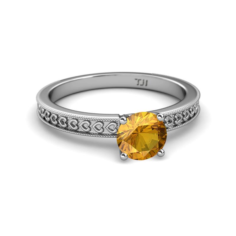 Citrine Heart Engraved Milgrain Womens Solitaire Engagement Ring 0.87 ct 18K White Gold More Details ...